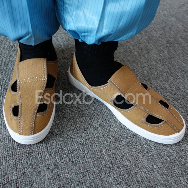土黃色防靜電PVC底帆布四眼無塵鞋