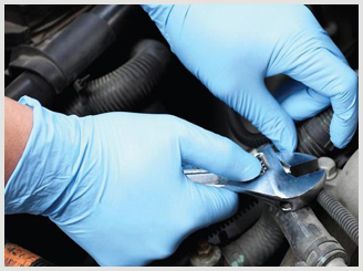 圖中為藍色丁晴手套用于汽修行業維修使用,因丁晴手套具有耐油耐溶劑耐穿刺等特點而廣泛使用。